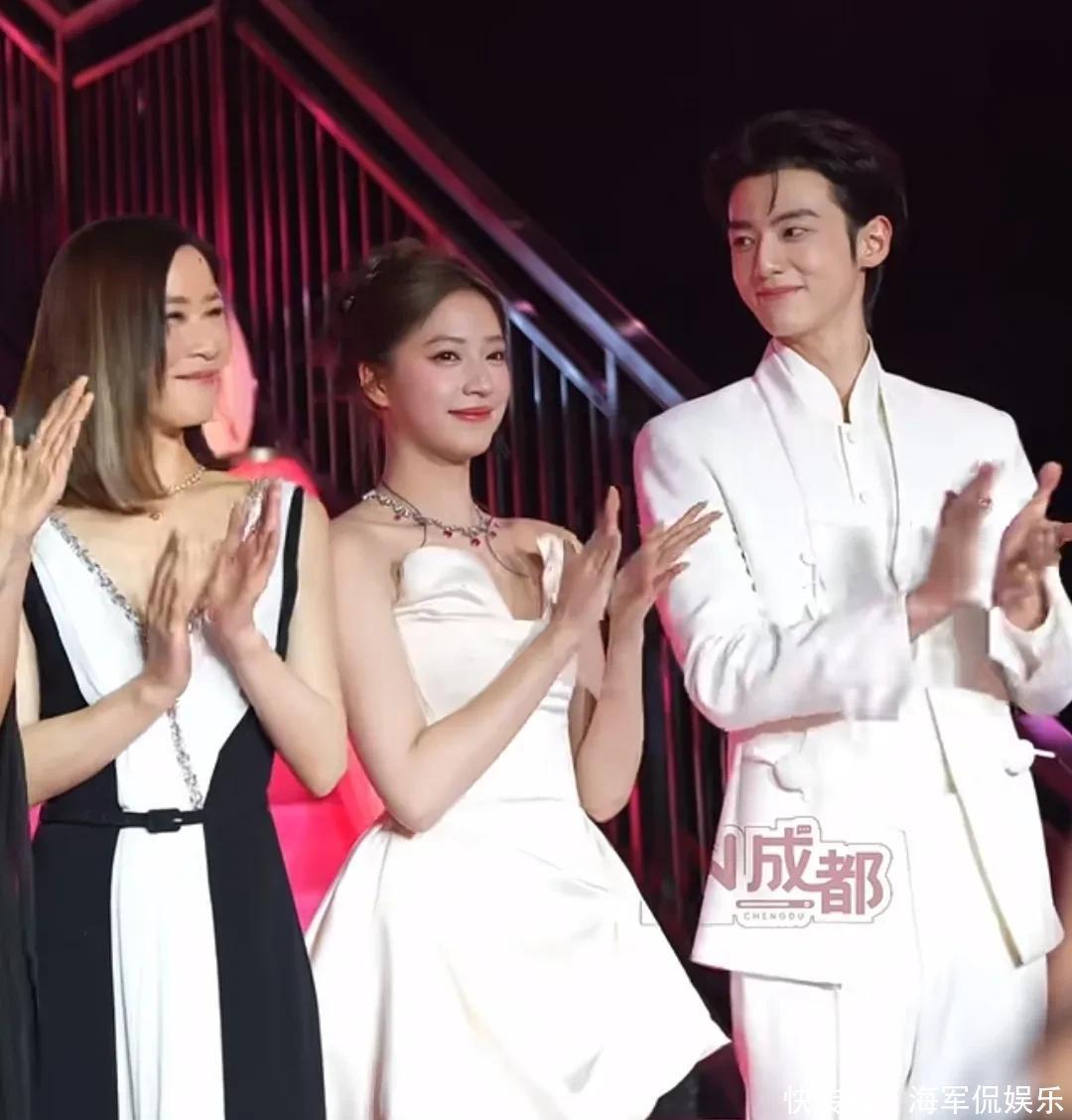 但单独一看也是漂亮美人来的,和一旁穿白色西装的赖伟明站在一起还挺般配。